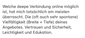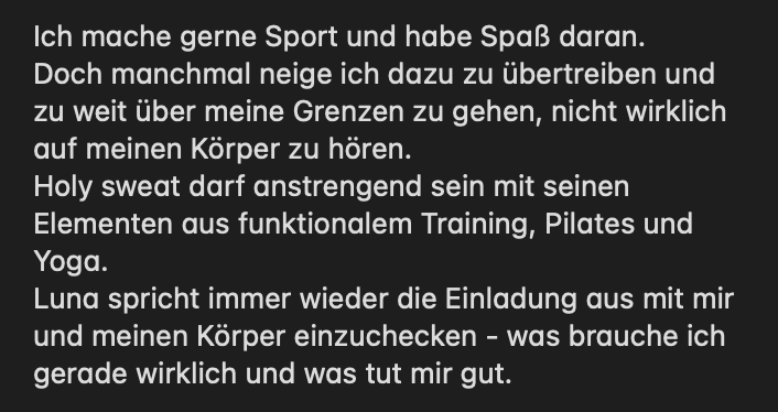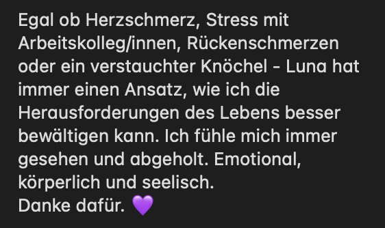 Daher sind wir während deiner Session in Kontakt & passend laufend die Übungen an dich & dein Anliegen an.