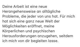 Bitte beachte jedoch, dass es sich bei der Begleitung nicht um eine Ausbildung handelt.