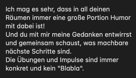 Ich arbeite ohne unnötiges Fach-Kauderwelsch & ohne Brechstangenmethoden, sondern alltagstauglich, humorvoll & mit direkt anwendbaren Übungen!